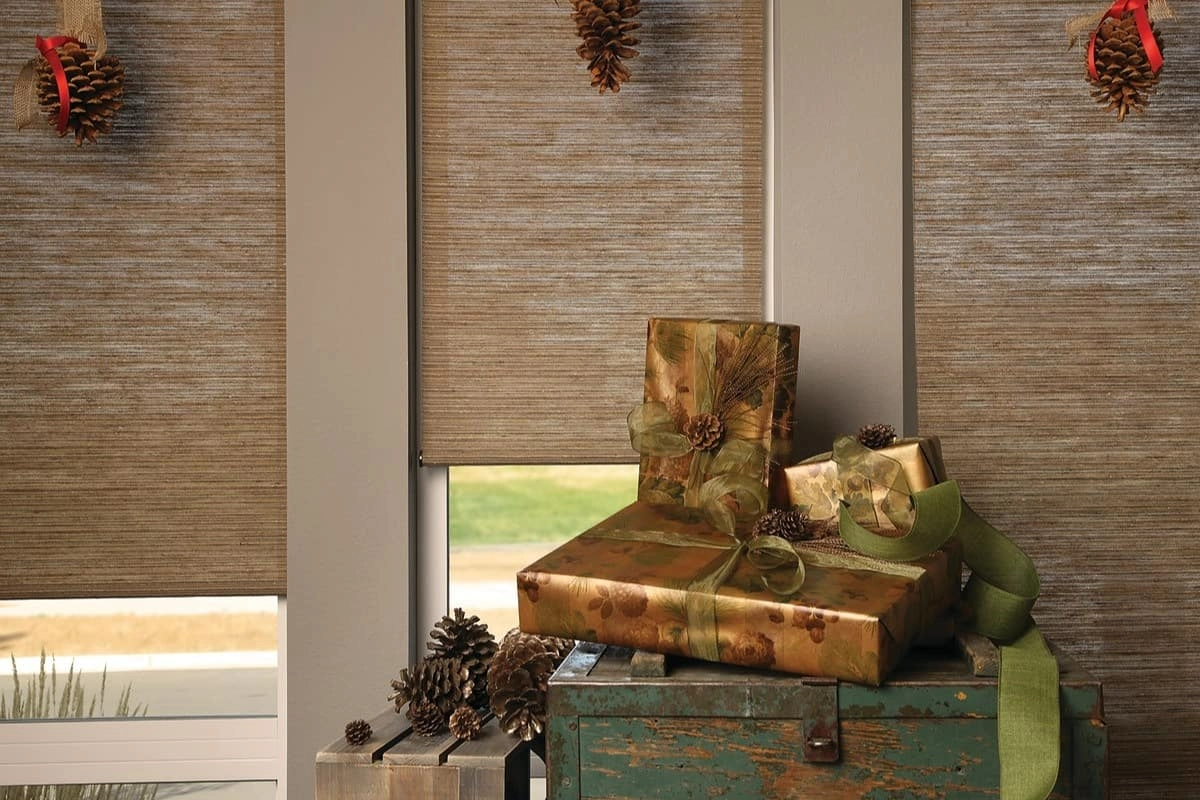 Hunter Douglas Designer Roller Shades are available in a wide range of colors and patterns. The fabric choices include a variety of styles including woven styles, sheer fabrics, and performance fabrics. They also come in a variety of colors including patterned fabric that can be used to decorate your home for the winter months or for Thanksgiving dinner table settings. These simple shades can act as a focal point or let your decor shine this holiday season, and throughout the year.